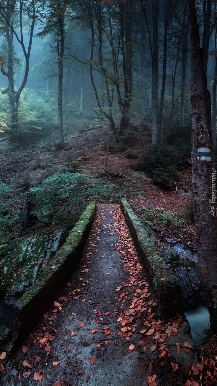 Edytor tapety: Mostek w zamglonym lesie