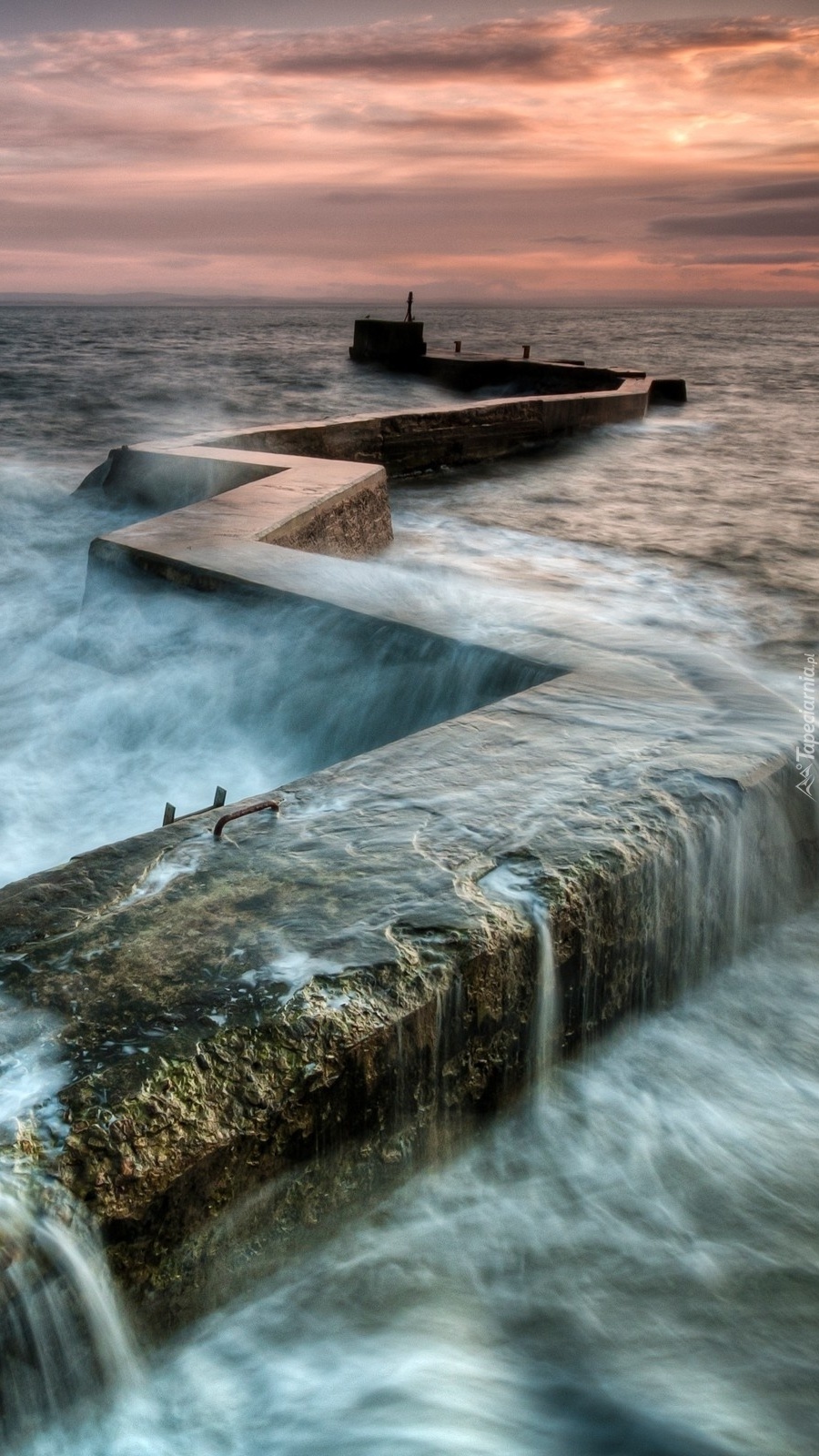 Edytor tapety: Morskie fale uderzające o kamienny mostek