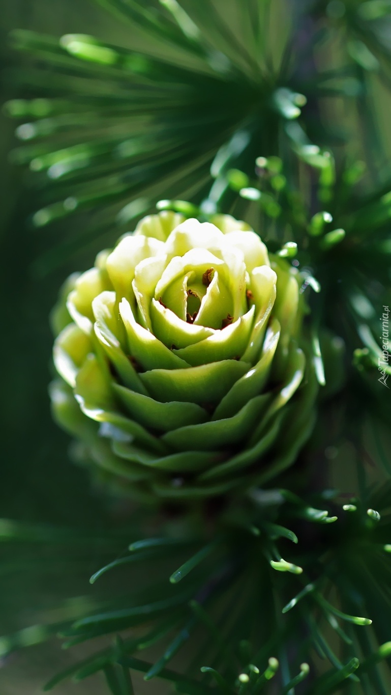 Edytor tapety: Szyszka rosnąca wśród zielonych igieł