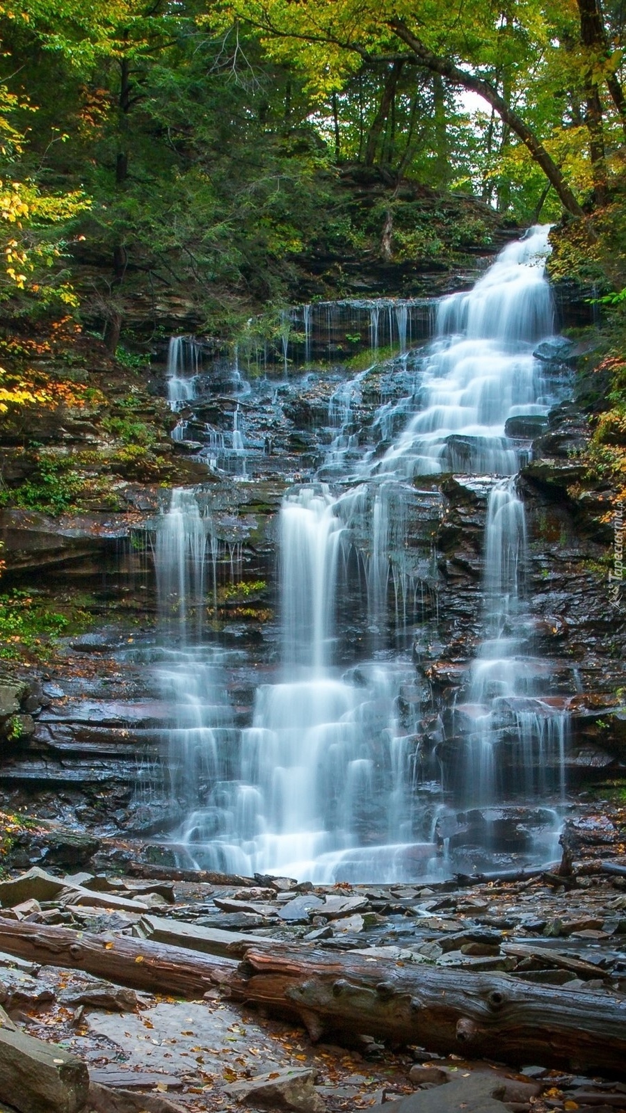 Edytor tapety: Wodospad kaskadowy w lesie