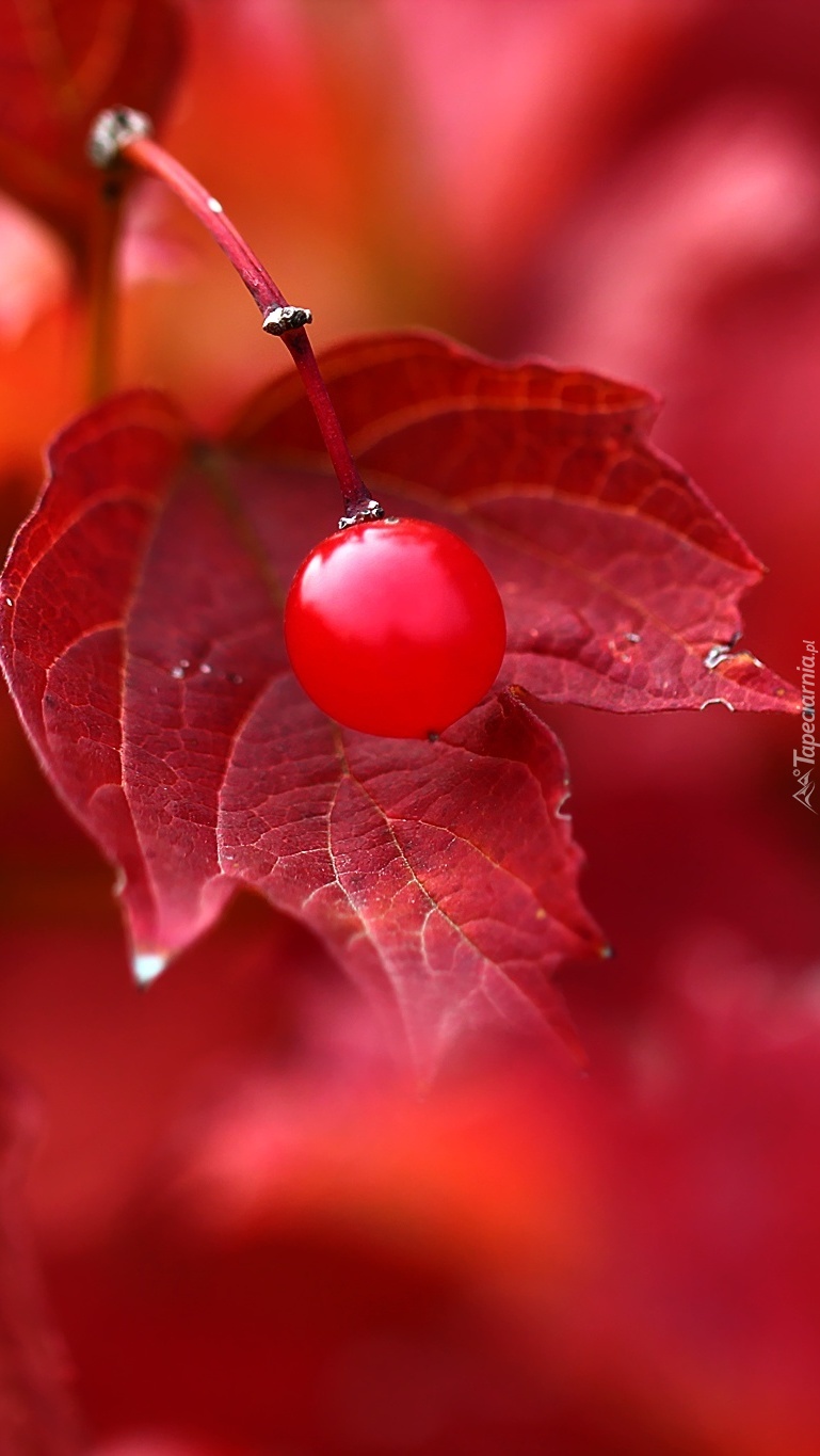 Edytor tapety: Jagoda na czerwonym liściu