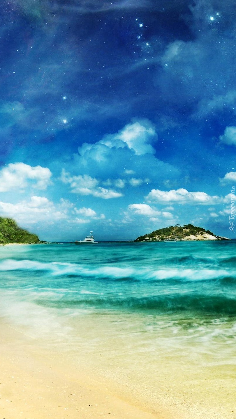 Edytor tapety: Gwiazdy świecą nad morską plażą