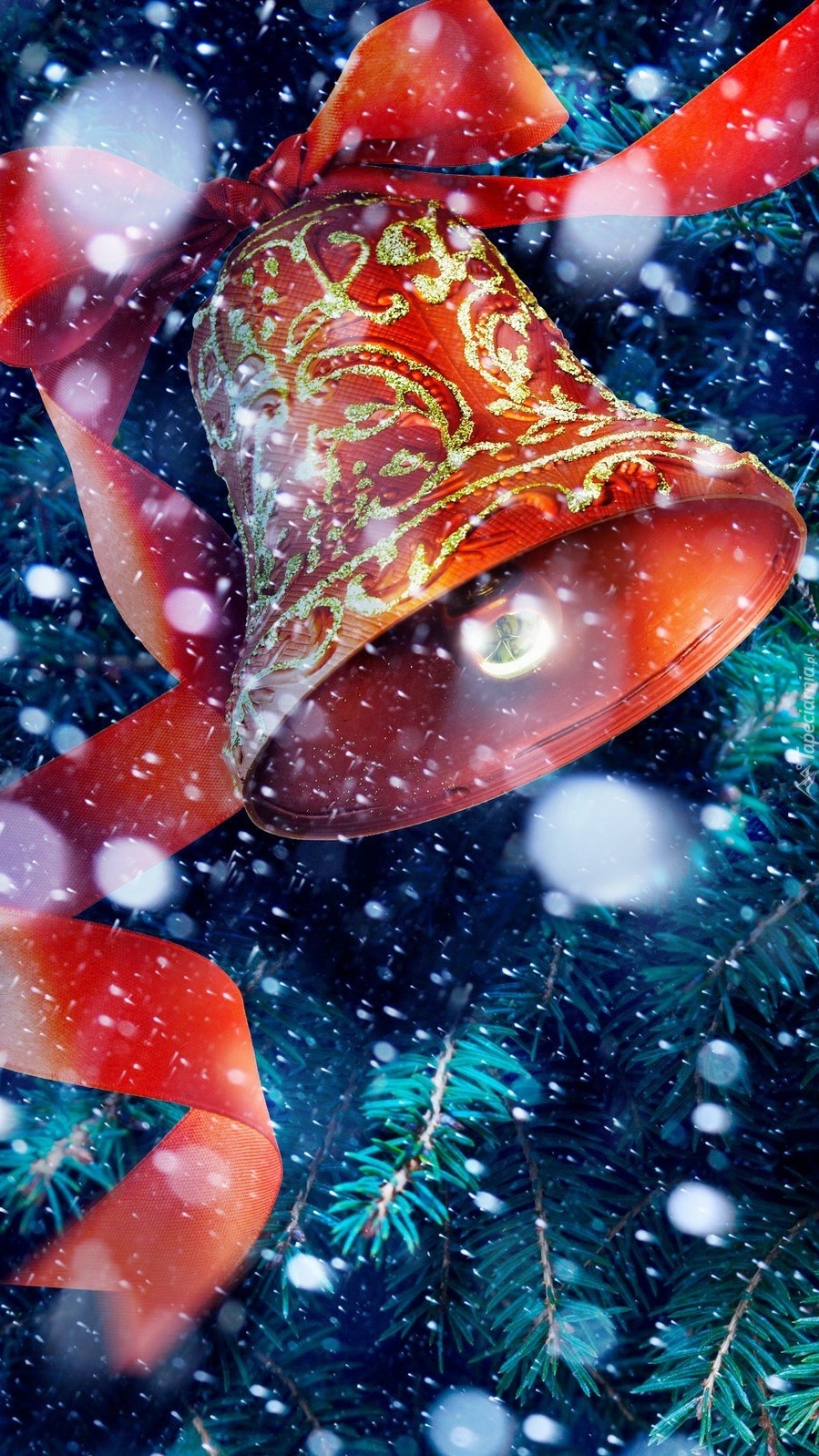 Edytor tapety: Dzwonek świąteczny na czerwonej wstążce