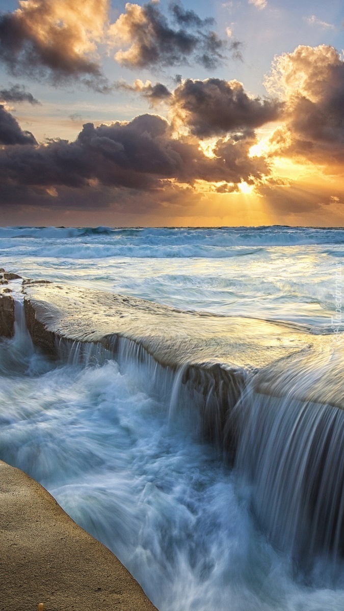 Edytor tapety: Morze obmywa przybrzeżne skały