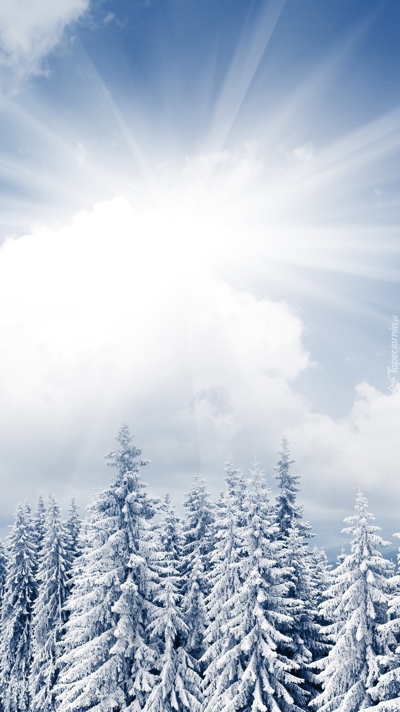 Edytor tapety: Promienie słońca nad lasem zimą