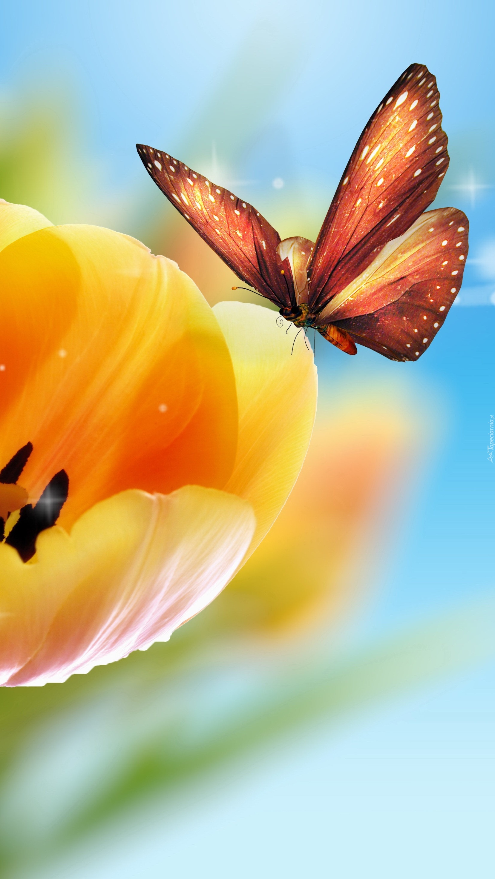 Edytor tapety: Motyl na płatku żółtego tulipana