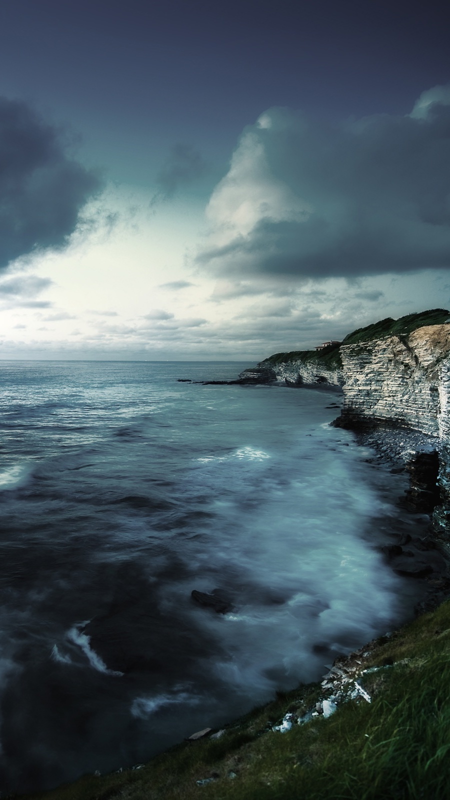 Edytor tapety: Fale wzburzonego morza bijące o brzeg