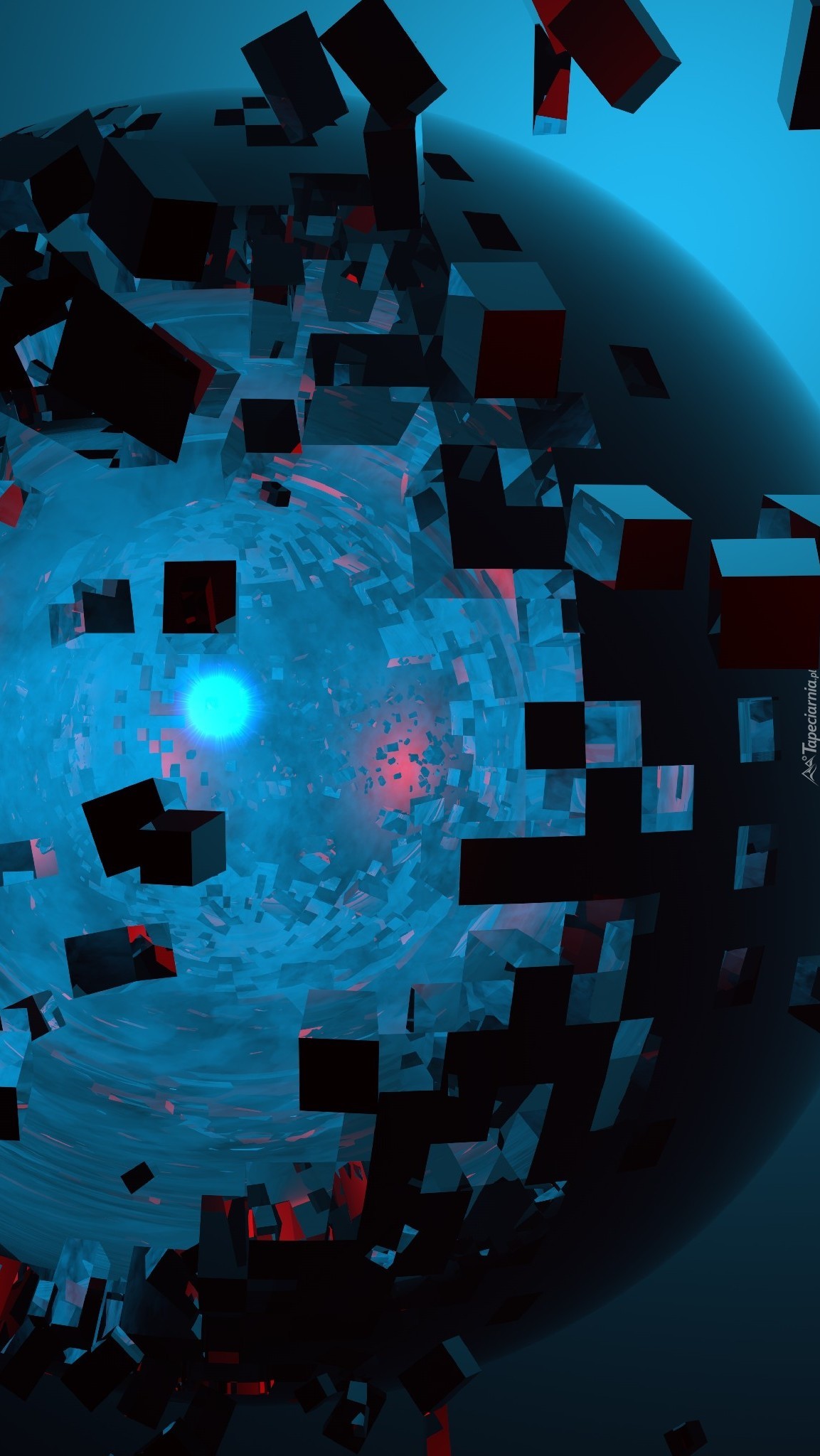 Edytor tapety: Rozpadająca się graficzna granatowa kula