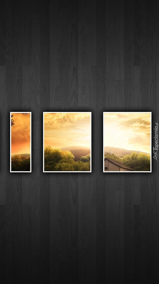 Edytor tapety: Trzy obrazy z zachodzącym słońcem