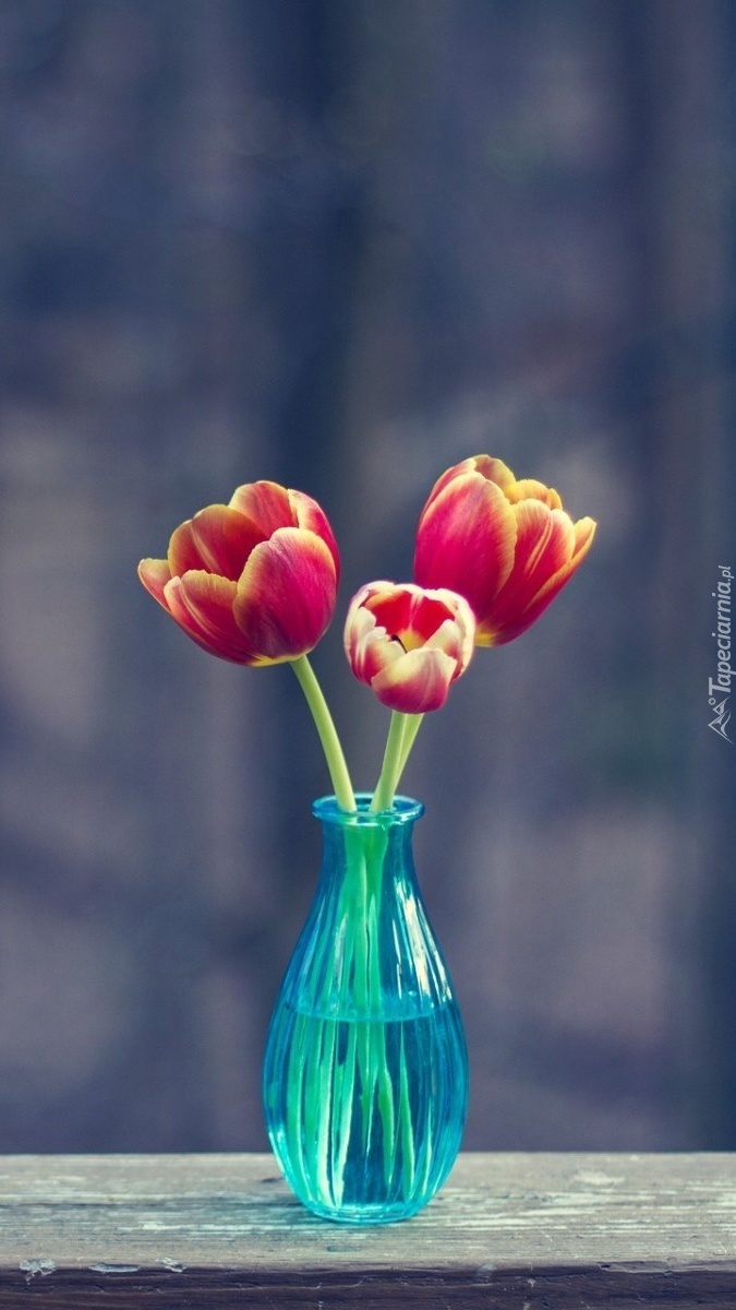 Edytor tapety: Trzy tulipany uwięzione w wazonie