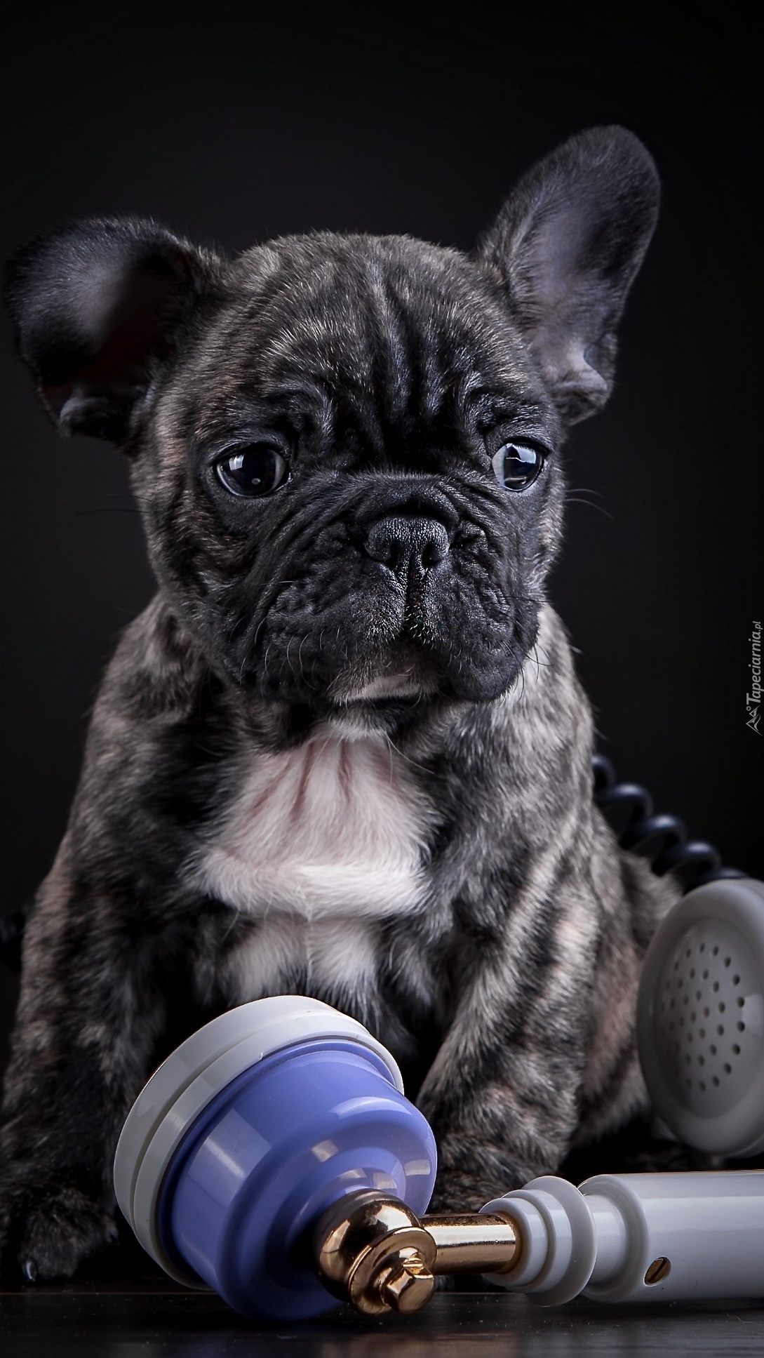 Edytor tapety: Buldog korzystający z telefonu