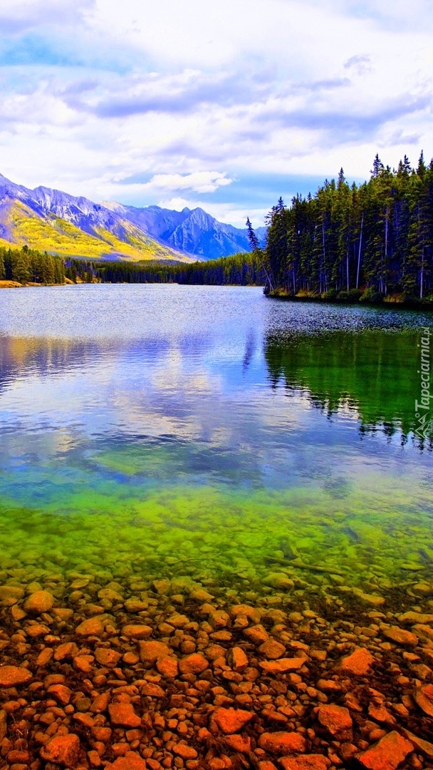 Edytor tapety: Czyste leśne jezioro w górach