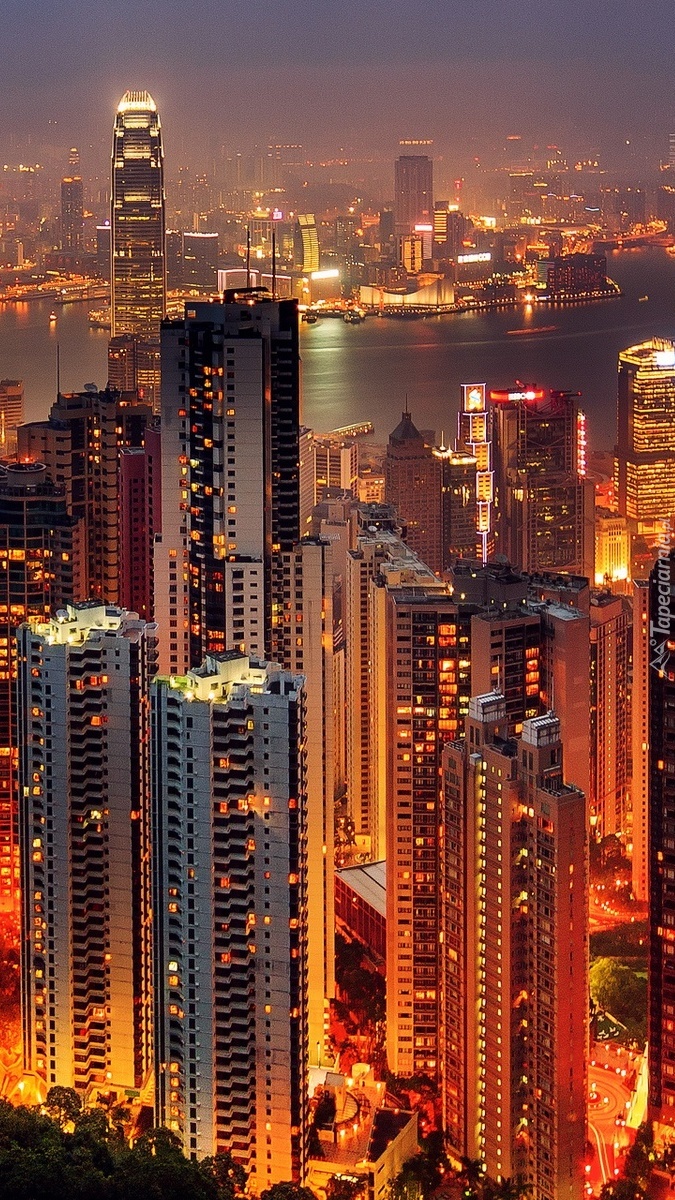 Edytor tapety: Piękna nocna panorama wielkiego miasta