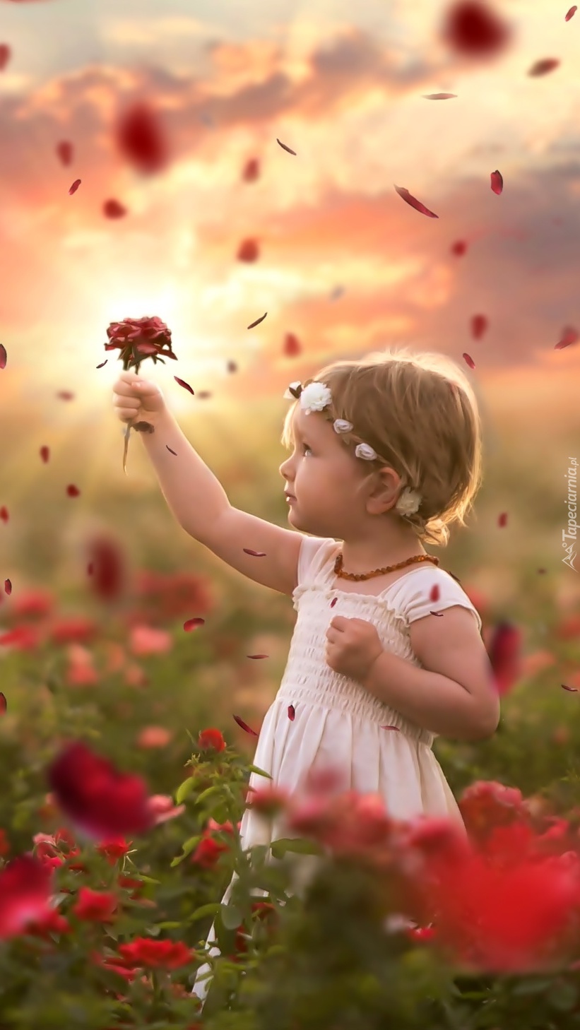 Edytor tapety: Dziewczynka zachwycona czerwonymi różami
