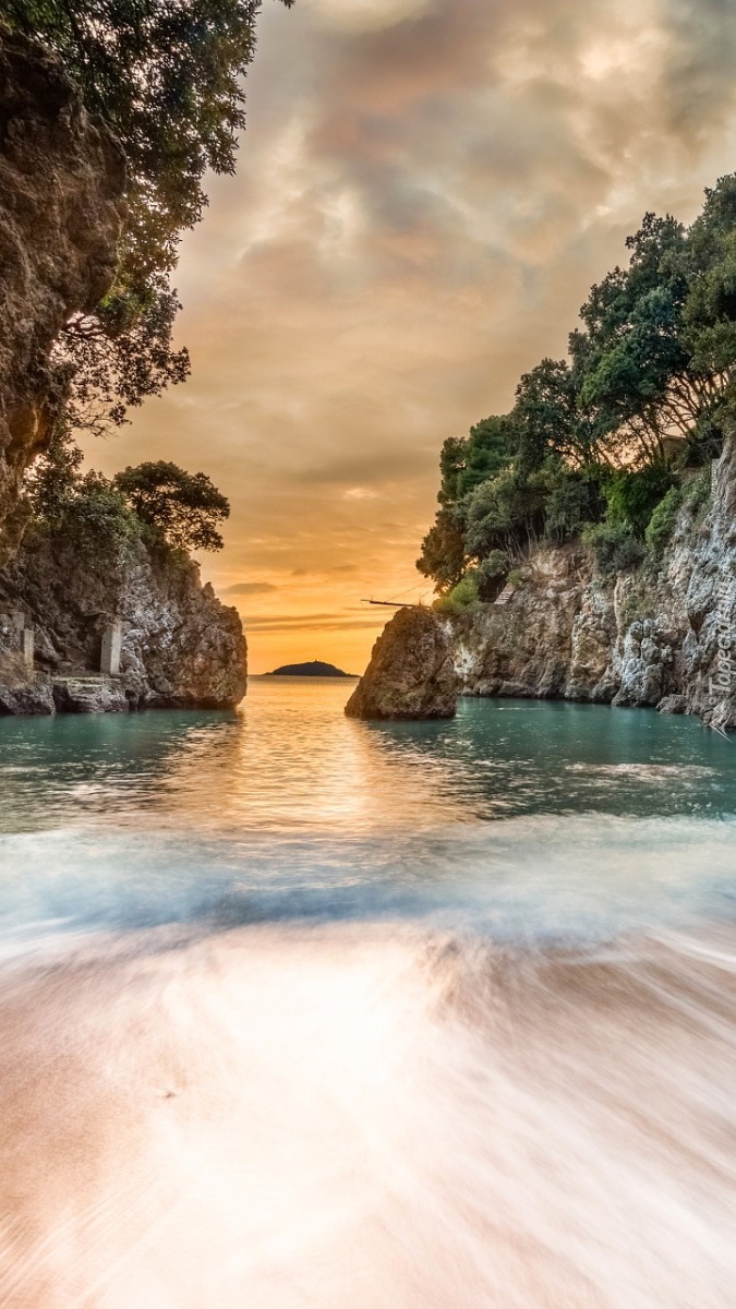 Edytor tapety: Droga w stronę morza pomiędzy klifami