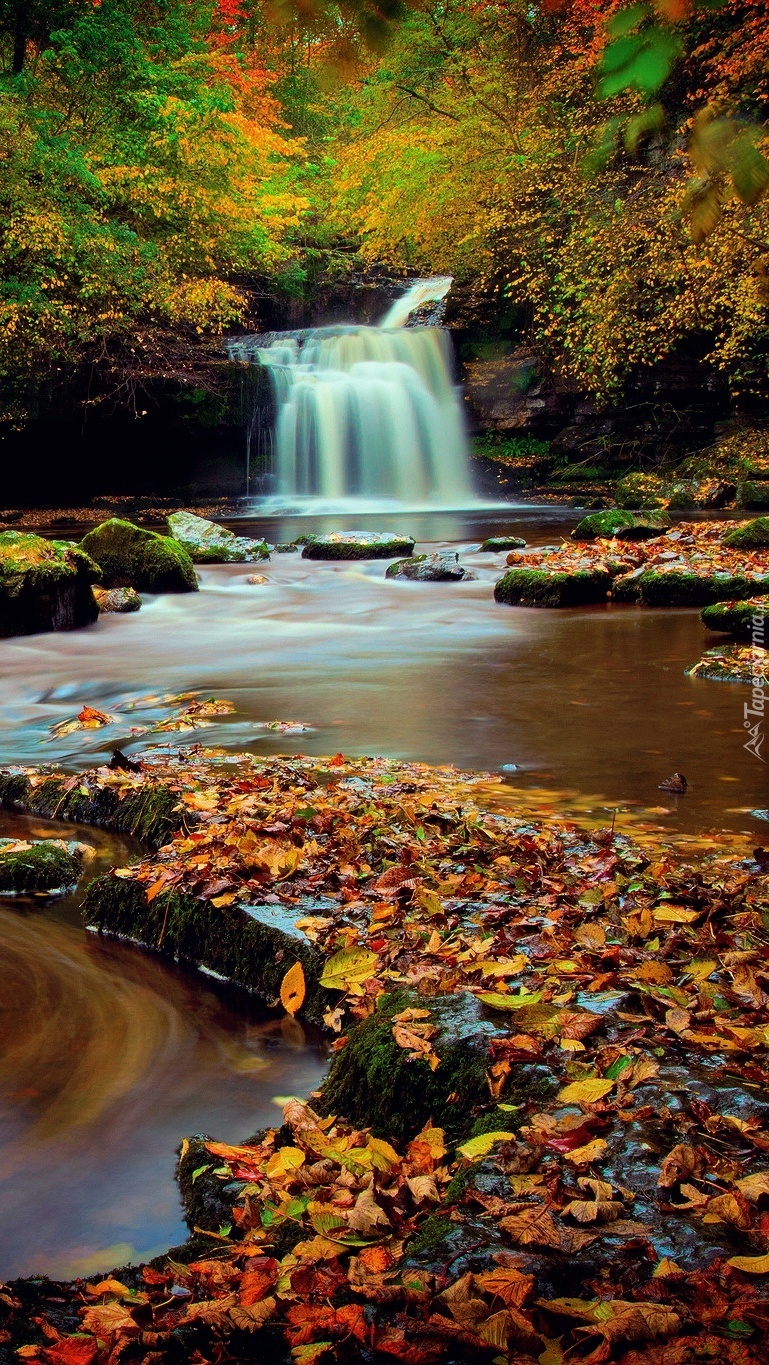 Edytor tapety: Wodospad w jesiennym lesie