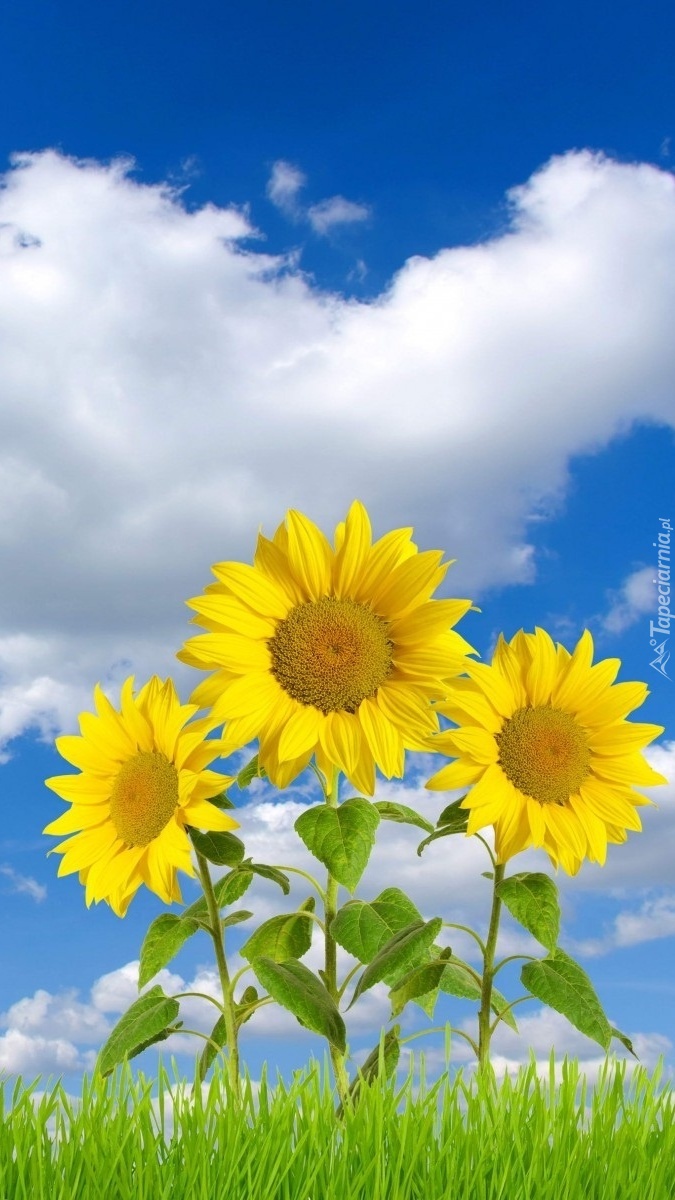 Edytor tapety: Słoneczne kwiaty na niebieskim niebie