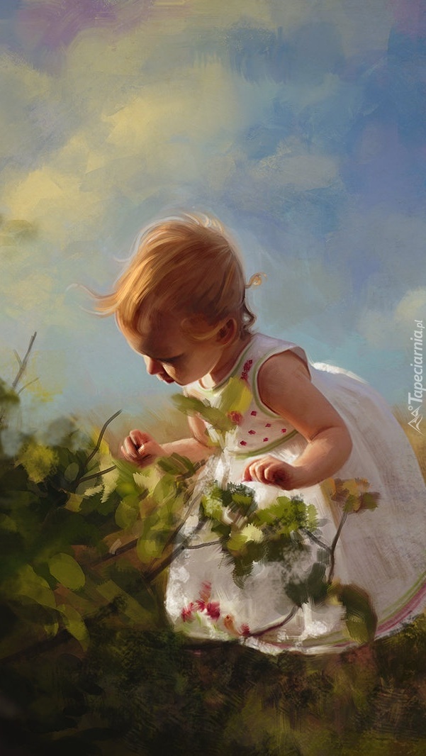 Edytor tapety: Dziewczynka pochylająca się nad krzewami
