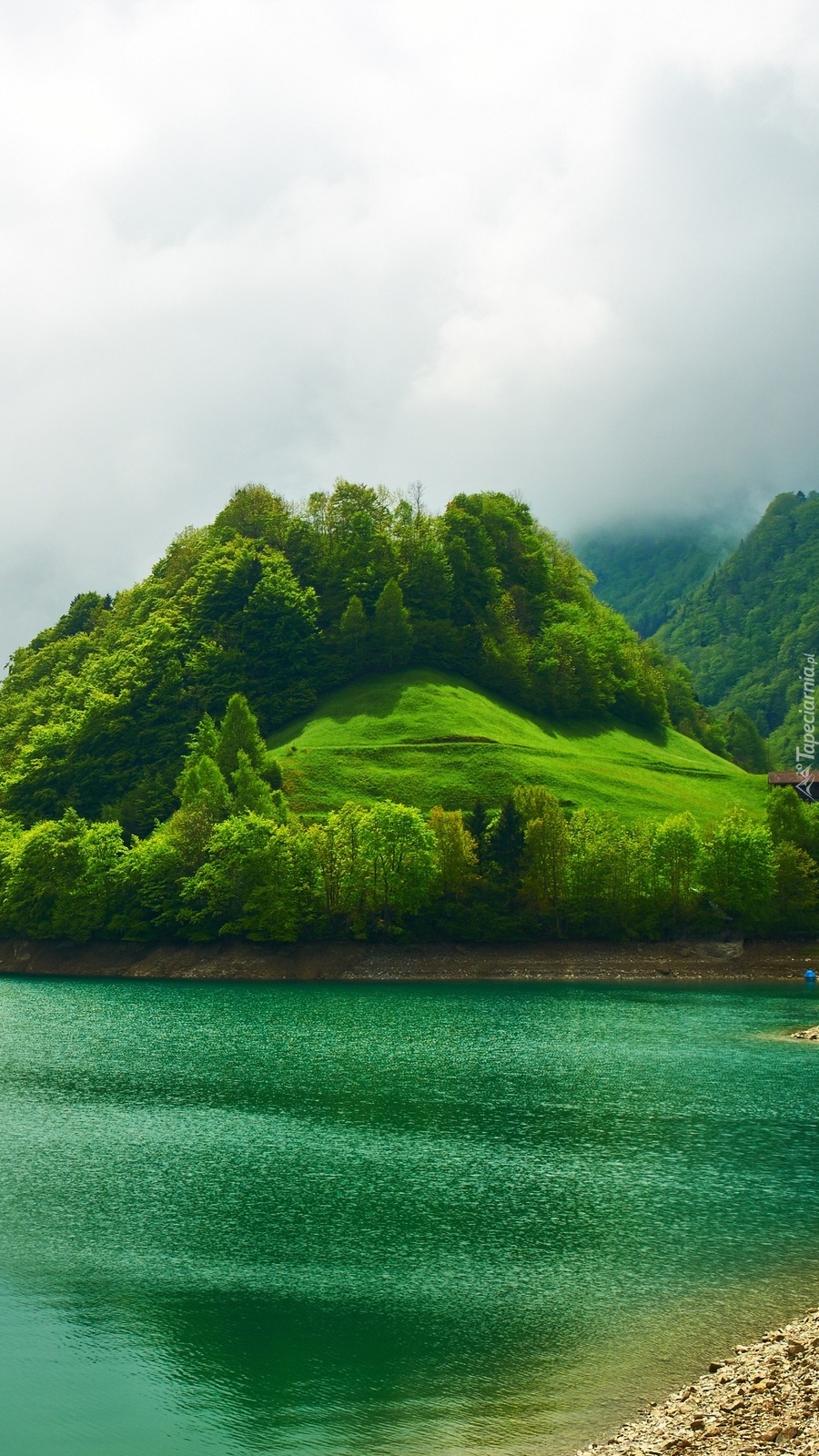 Edytor tapety: Zielone góry przy szmaragdowym jeziorze