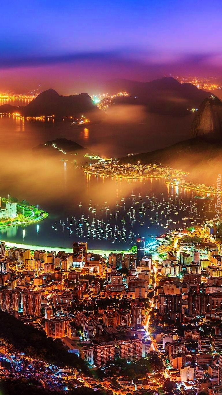 Edytor tapety: Mgła nad oświetlonym miastem.