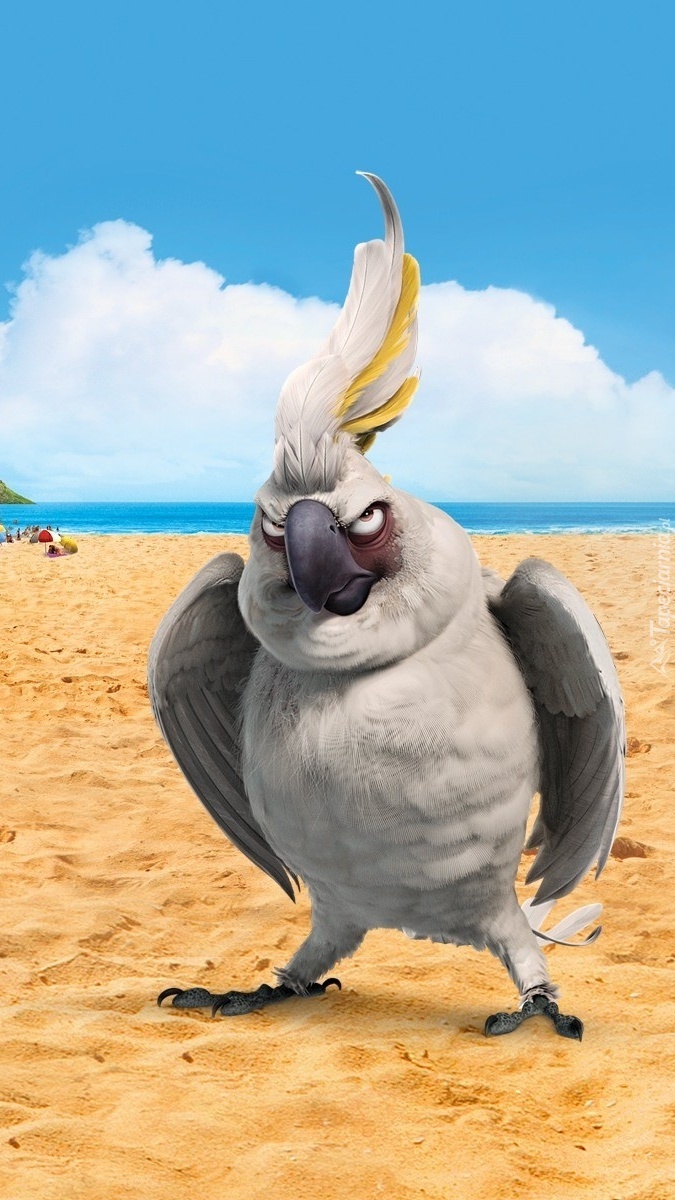 Edytor tapety: Naburmuszona papuga na plaży