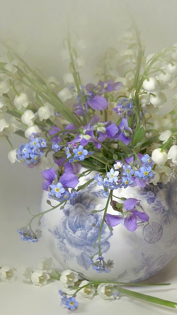 Edytor tapety: Niezapominajki i konwalie w wazoniku