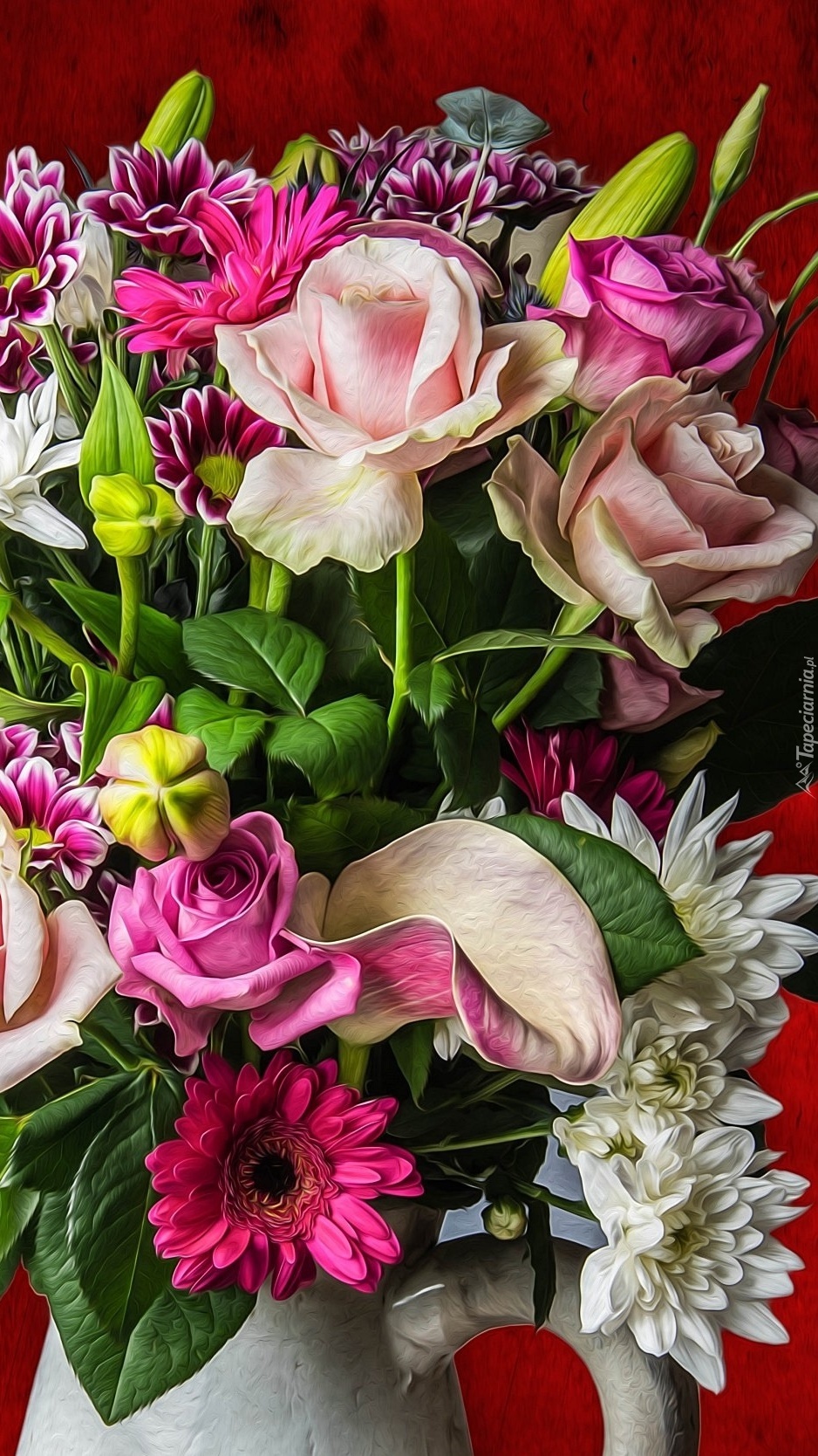 Edytor tapety: Kolorowe kwiaty w wazonie