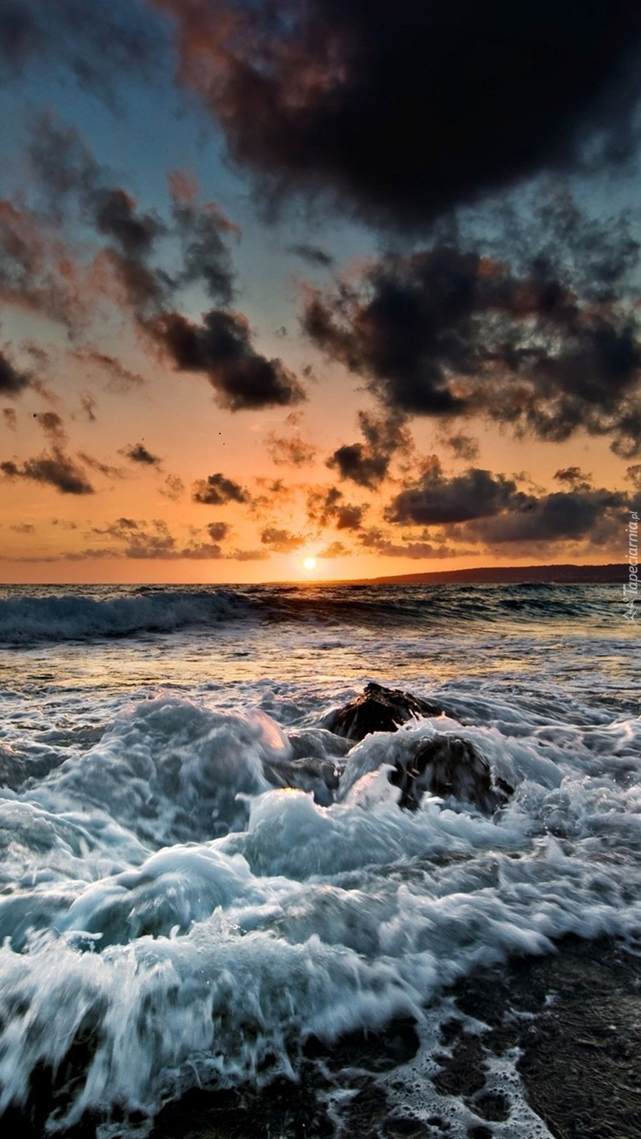 Edytor tapety: Morskie fale w zachodzącym słońcu