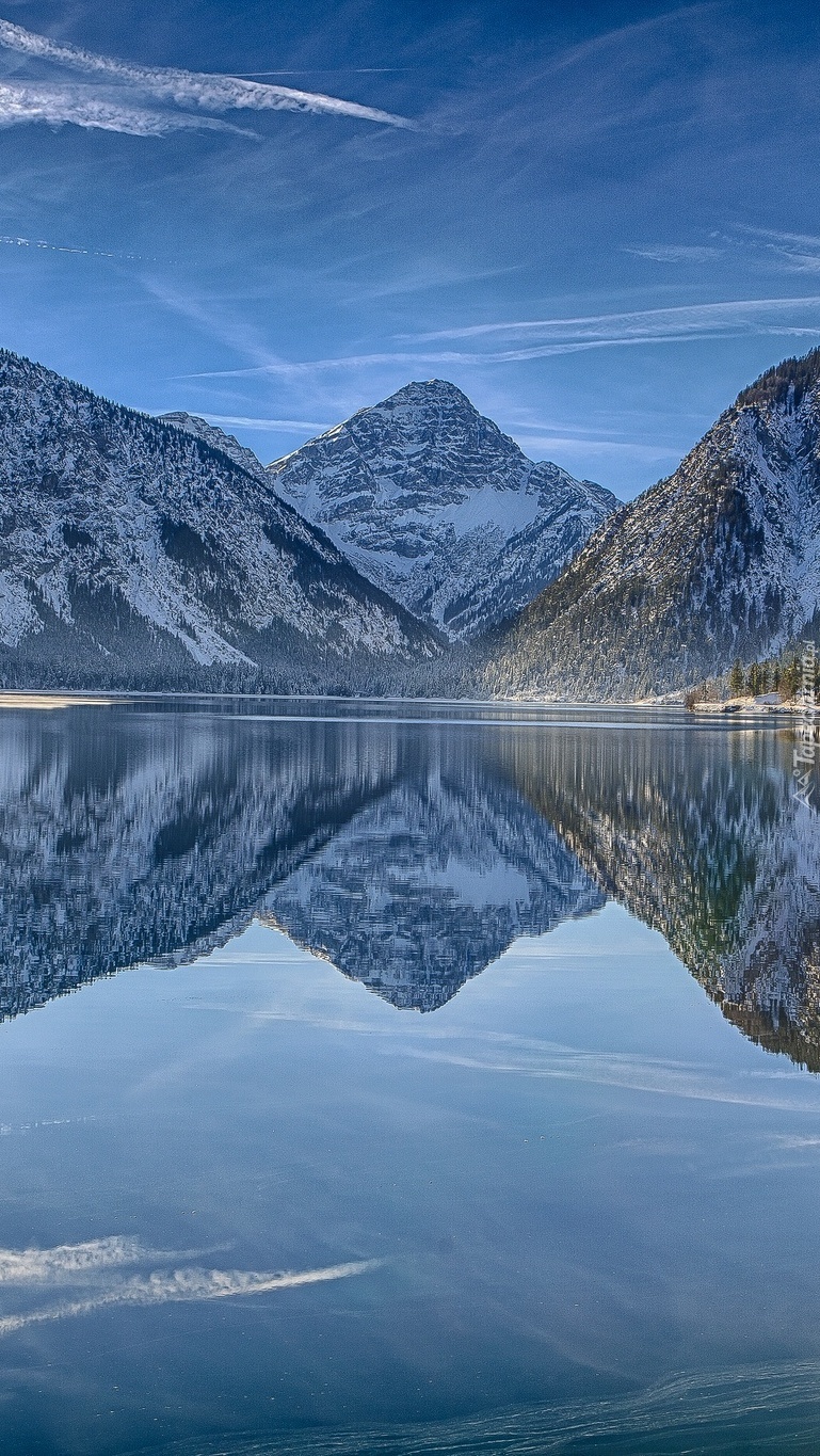 Edytor tapety: Góry odbijają się w lustrze wody