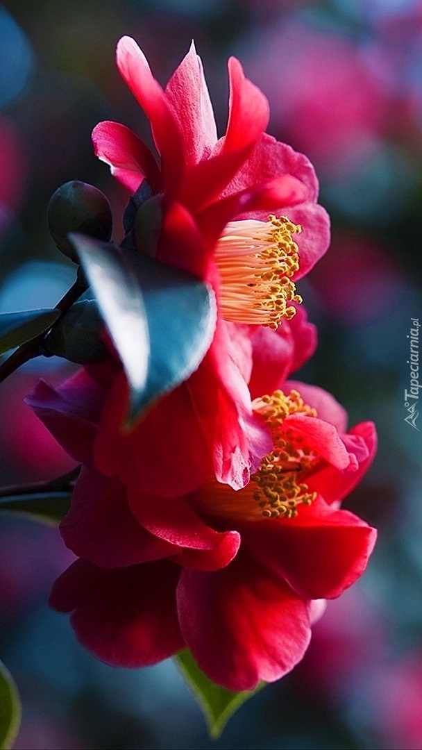 Edytor tapety: Czerwone kwiaty na krzaku