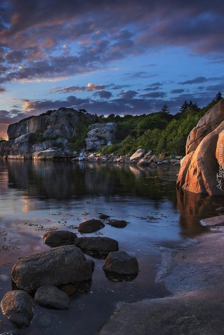 Edytor tapety: Kamieniste wybrzeże o zmierzchu