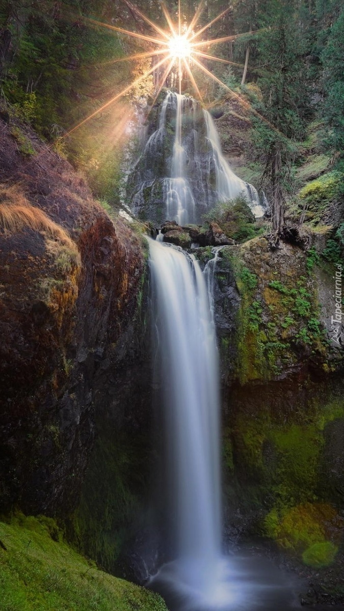 Edytor tapety: Promienie słoneczne nad wodospadem