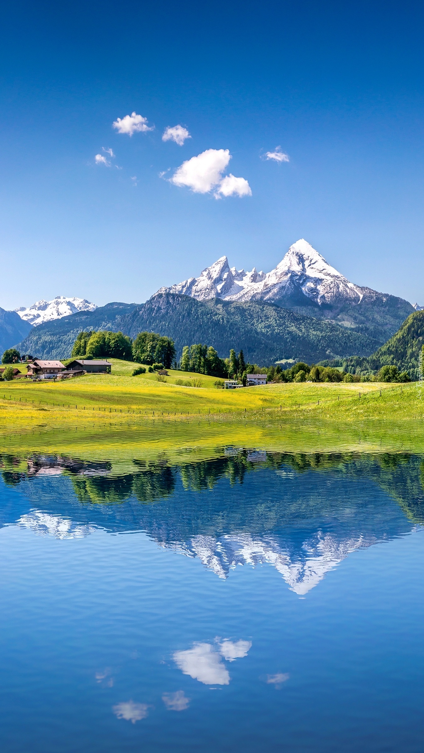 Edytor tapety: Górska osada nad jeziorem