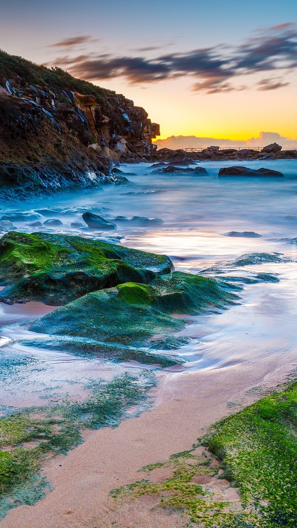 Edytor tapety: Piękne niebo nad morzem i skałami