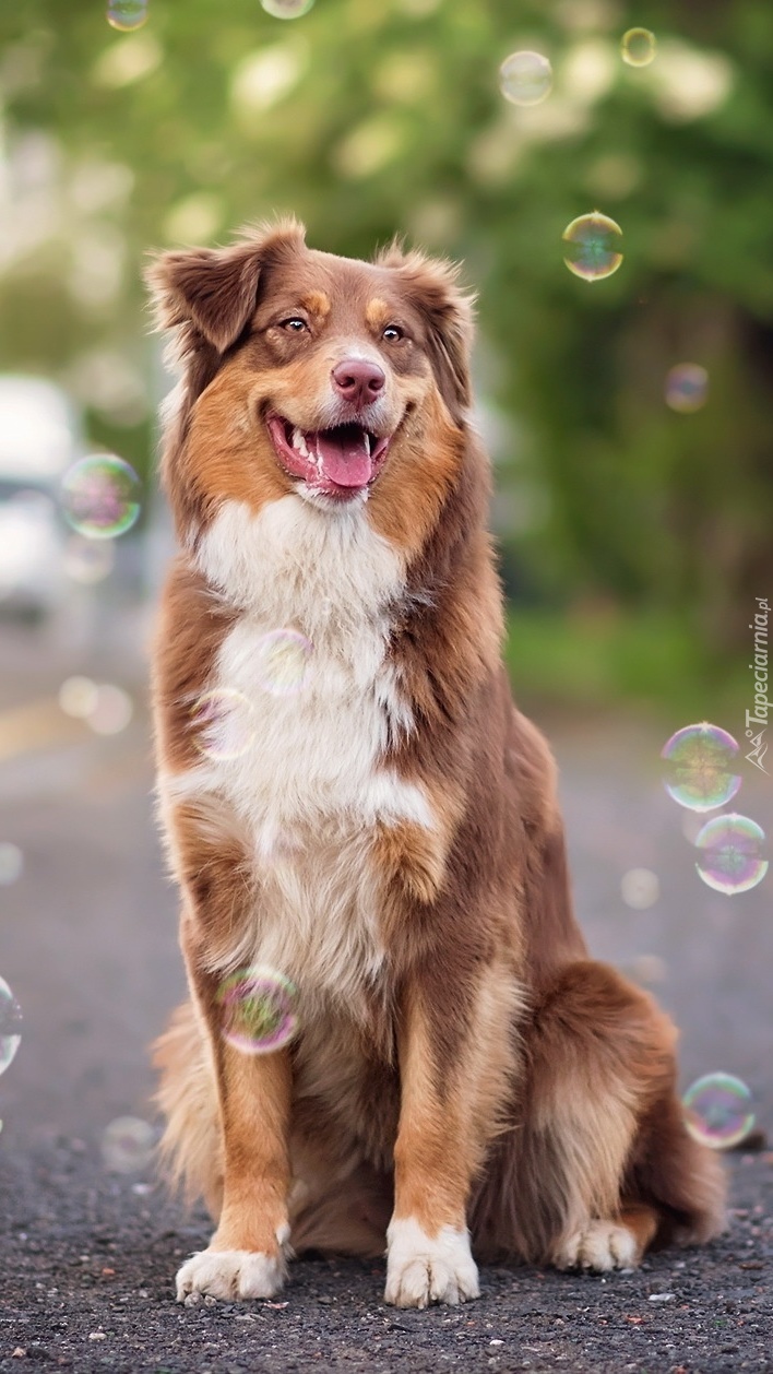 Edytor tapety: Owczarek obserwuje bańki mydlane