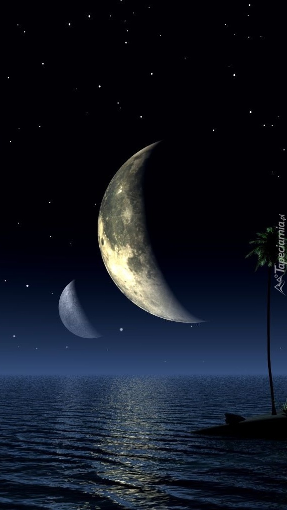 Edytor tapety: Dwa księżyce nad wodą