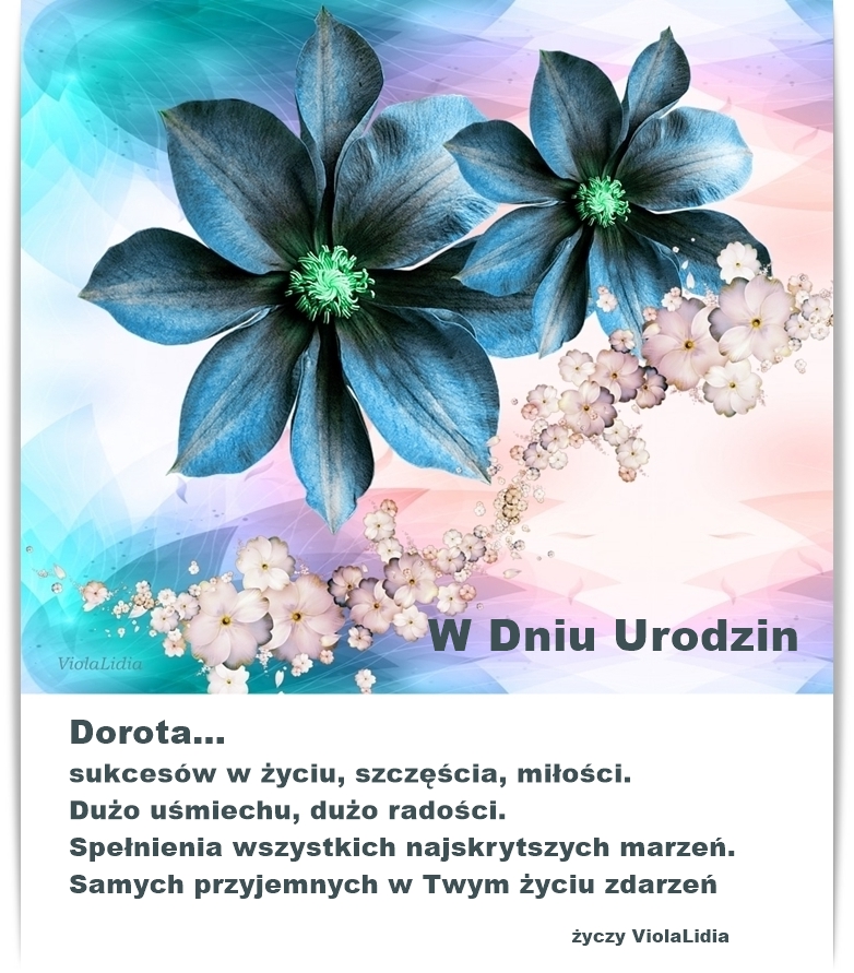 Dorotko przepraszam,że dopiero teraz, spóźnione, ale szczere życzenia urodzinowe. Wszystkiego najlepszego, i spełnienia marzeń.