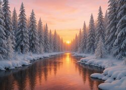 adminTapeta dnia wybrana !! Wygrała tapeta Zima, Drzewa, Las, Wschód słońca, Grafika AI [LINK], dodana przez GraGorek Gratulujemy!!