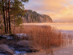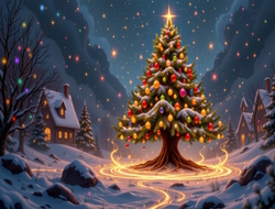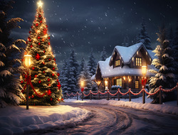 Tapeta z największą ilością wyświetleń: Oświetlony dom i drzewa na wzgórzu o zachodzie słońca w zimowej scenerii, dodana przez GraGorek Gratulujemy!