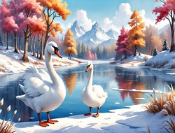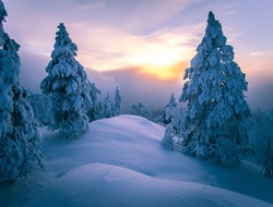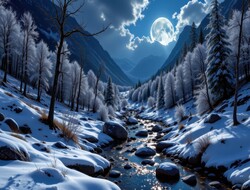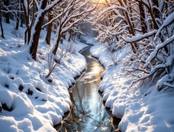 Tapeta z największym współczynnikiem wyświetleń/pobrań: Ośnieżone drzewa po obu stronach rzeki w zimowej scenerii, dodana przez majka1407 Gratulujemy!