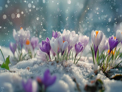 Tapeta z największym współczynnikiem wyświetleń/pobrań: Fioletowe rozwinięte krokusy na śniegu, dodana przez thean Gratulujemy!