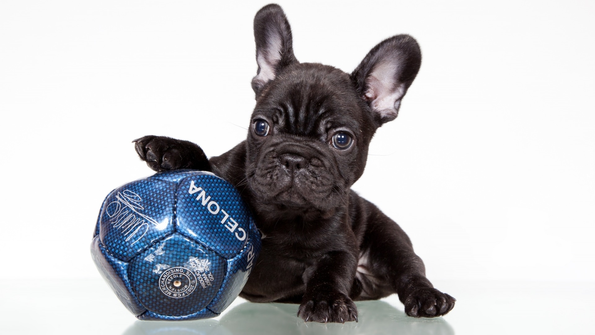 Buldog Francuski, Czarny, Szczeniak, Piłka