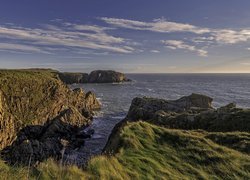 Szkocja, Zamek, Eilean Donan, Jezioro, Most, Drzewa, Zachód słońca, Chmury