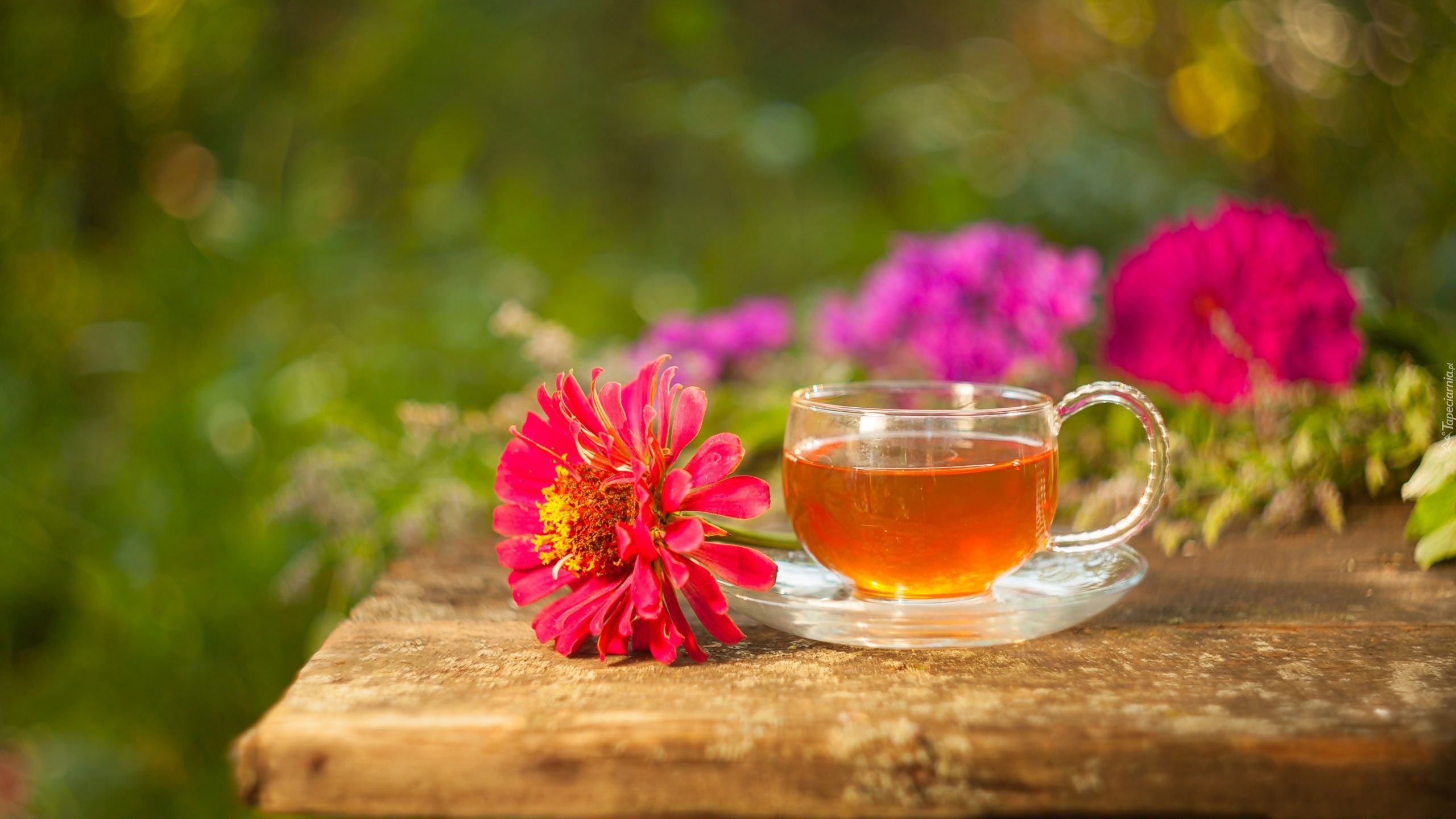 Tagi: Filiżanka, Herbata, Kwiat, Cynia, Rozmyte tło
