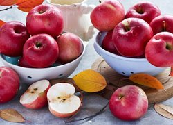 Czerwone jabłka na materiale