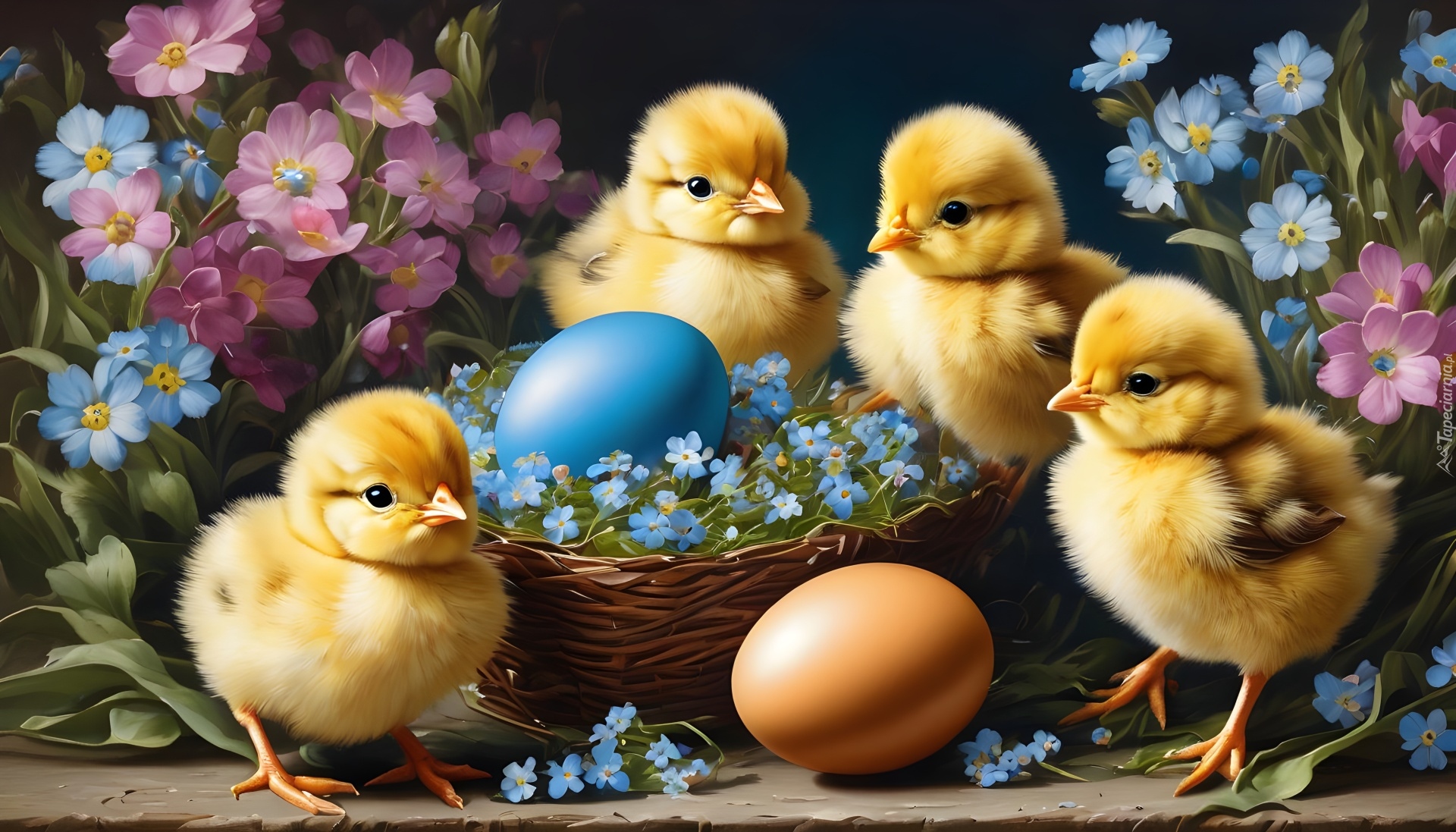 Tagi: Wielkanoc, Kurczęta, Pisanki, Kwiaty, Koszyk, Grafika