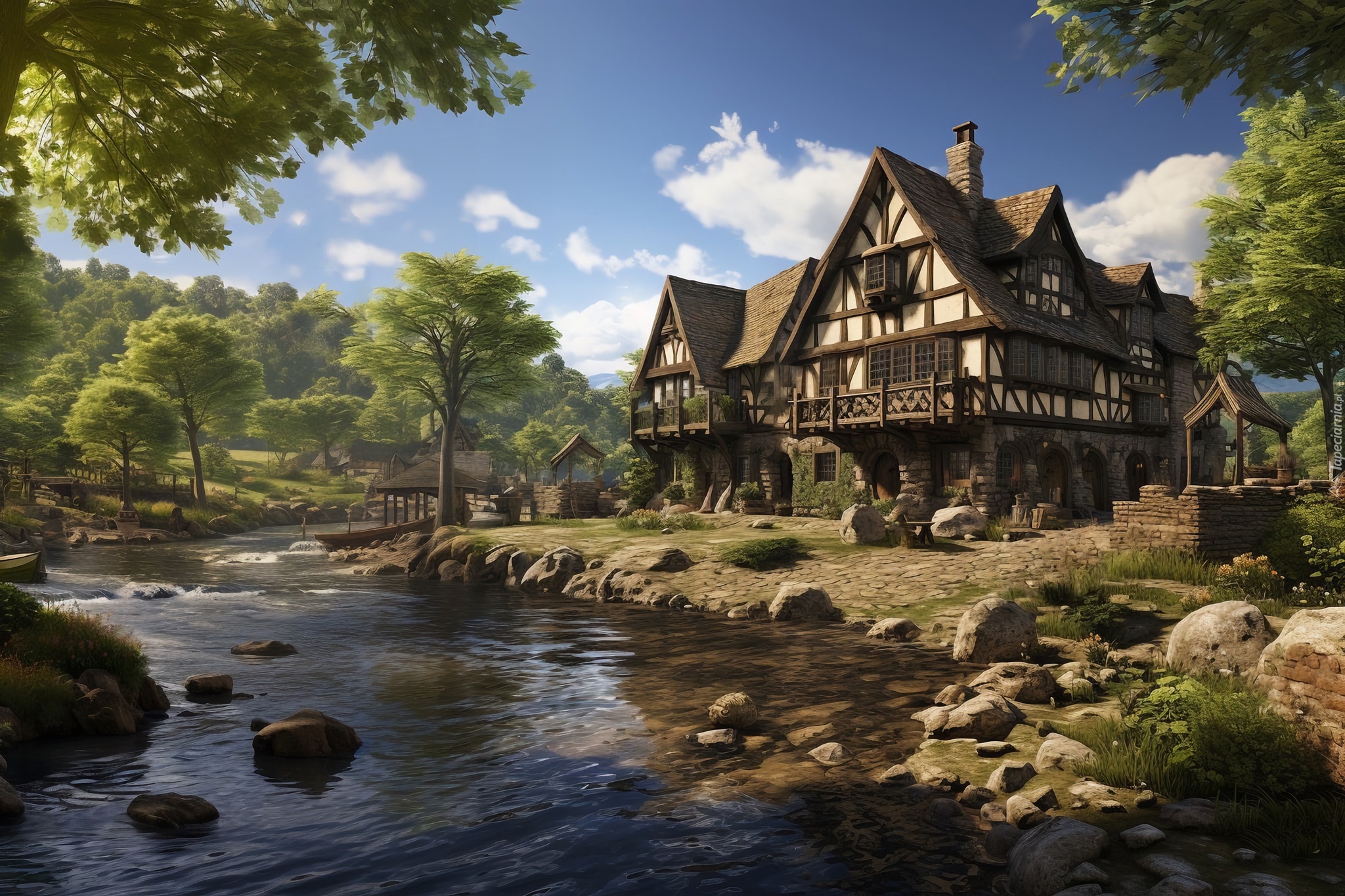 Tagi: Dom, Drzewa, Rzeka, Grafika