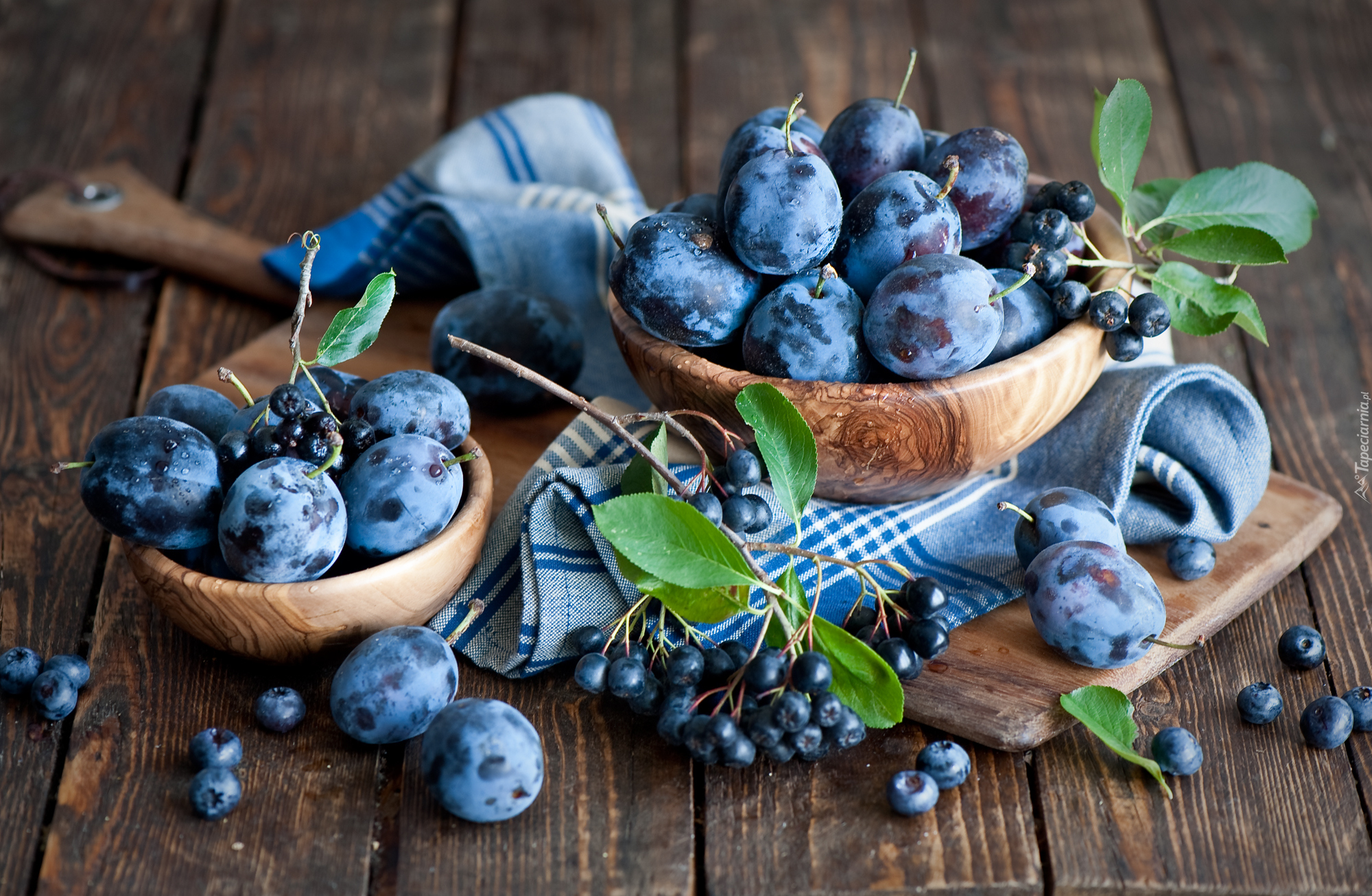 Tagi: Śliwki, Drewniane, Miseczki, Czarny bez, Deska