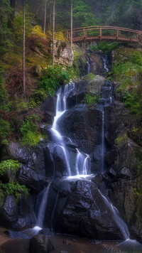 Tagi: Wodospad, Skały, Las, Drewniany, Mostek