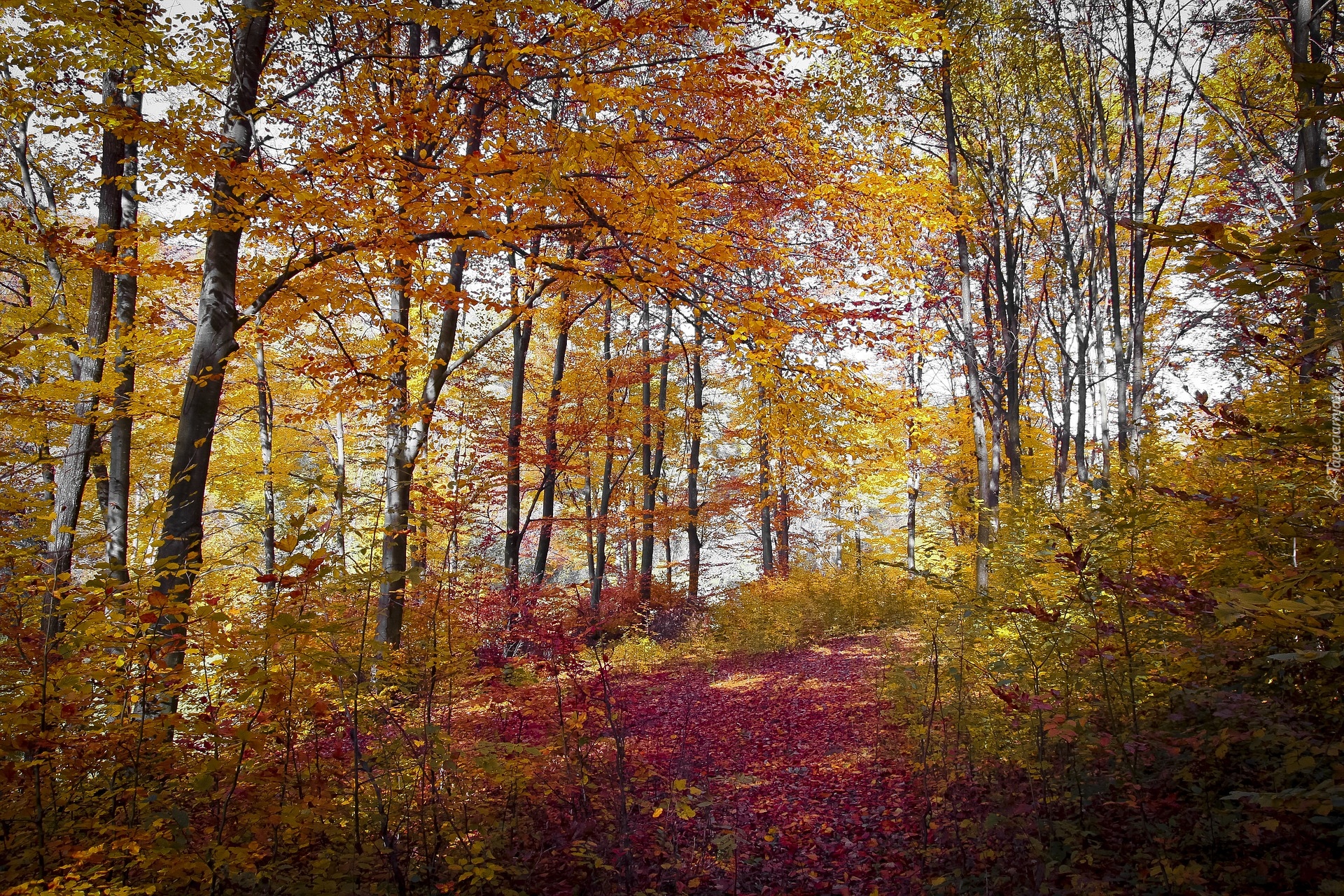 Tagi: Jesień, Las, Drzewa, Kolorowe, Liście